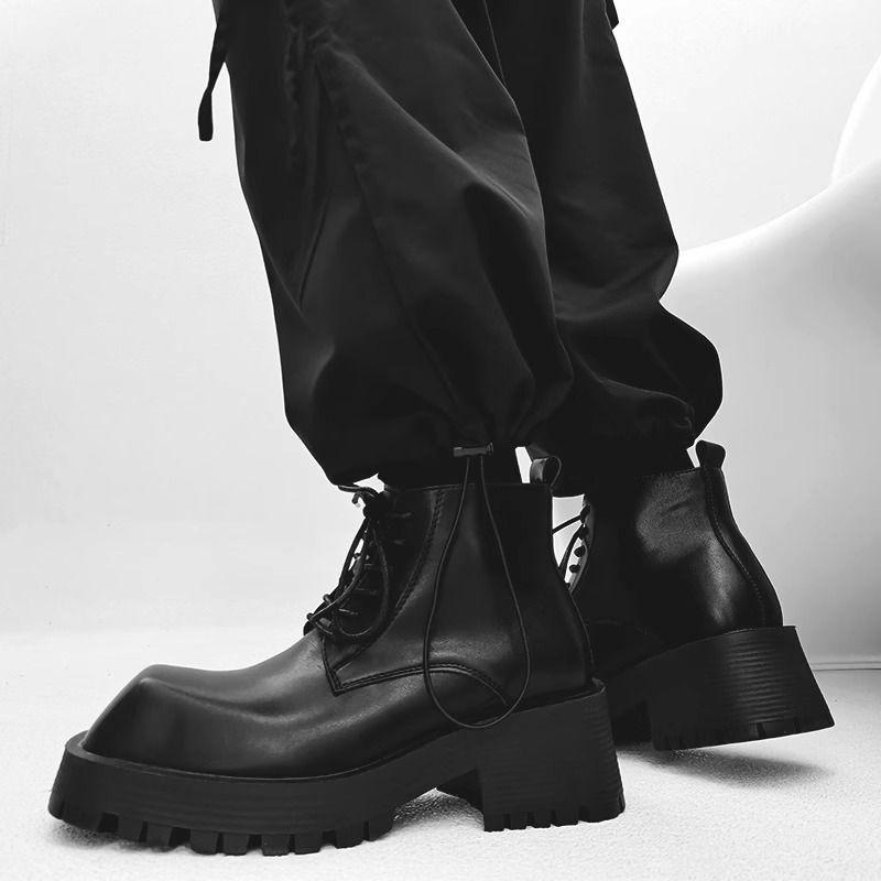 Square Men's Trendy European and American Niche Medium-top Retro Thick-soled Heightening Locomotive Boots High-top Leather Shoes