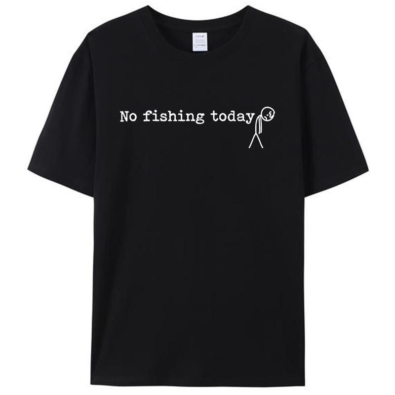 Heute kein Angeln Lustiger Trauriger Strichmännchen Angelwitz Damen Herren 100% Baumwoll-T-Shirt Kleidung Rundhals Freizeit-Tops