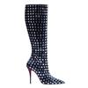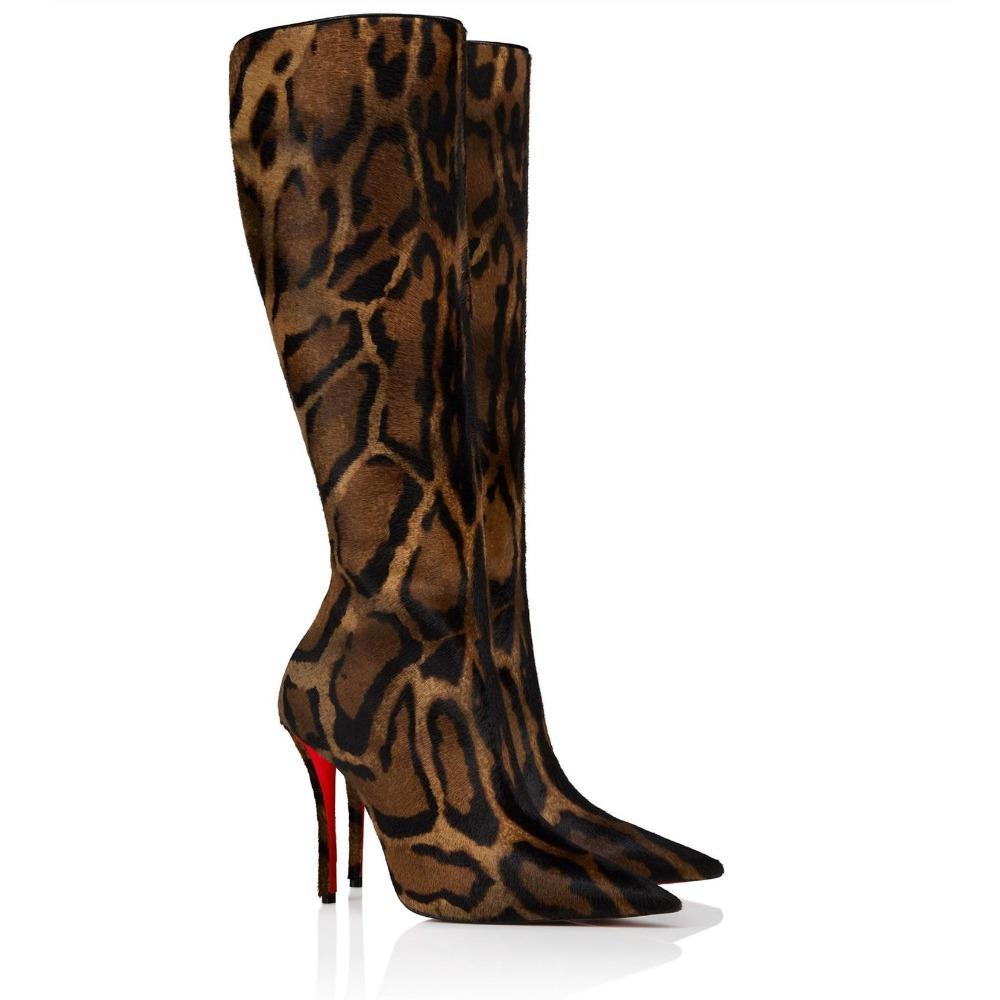 Herbst und Winter Damen Weidennagel Schlanker Absatz Stiefel Mode Roter Boden Spitze Seitlicher Reißverschluss Hoher Schaft Damen Kniehohe Stiefel