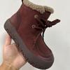 Damen Echtleder Stiefel Klobige Plateaustiefel Kurze Stiefel Retro Streetstyle Winter Warm Wolle Fell Damen Flats Stiefeletten