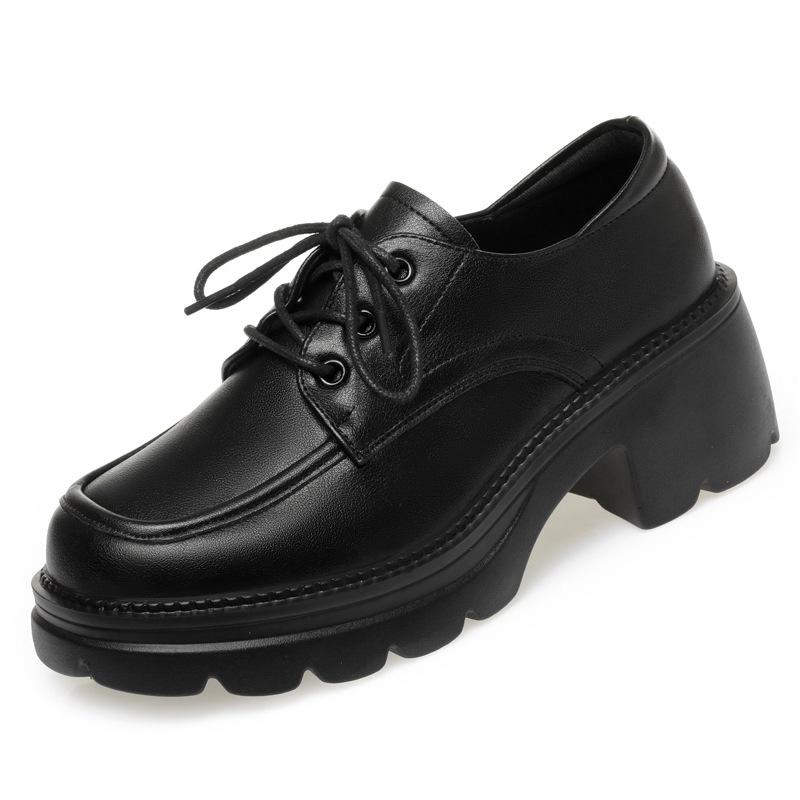 5,5 cm Britischer Stil Tiefer Mund Retro Bequeme Schuhe Dicke Sohle Plateau Oxford Schuhe Herbst High Heel Schuhe Büro Mutter