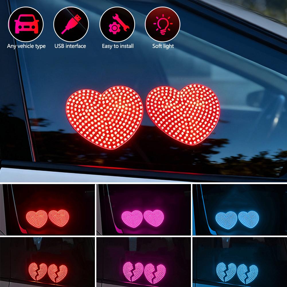 2Pcs/Set Heart-Shaped USB LED Car Interior Ambient Lights DIY Installation Auto Window Decoration Windshield Lights