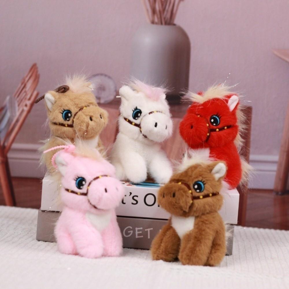 Einfarbiger Plüschpferde-Schlüsselanhänger Cartoon Plüschpferde-Puppenanhänger Geburtstagsgeschenk