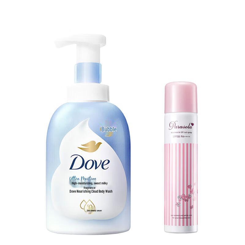This set includes Dove's Deep Nourishing Bubble Bath Shower Gel (400ml) and a Fine Sunscreen Spray (180ml). The shower gel is formulated for various skin types (excluding sensitive skin), providing moisturizing and hydrating benefits. Originating from Mainland China, this duo is perfect for your daily skin care routine.