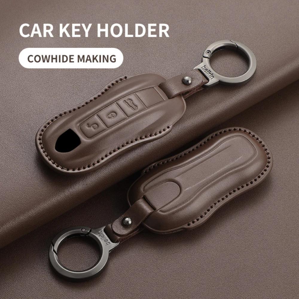 Autoschlüssel Hülle Abdeckung Schale für Porsche 718 Cayenne Panamera 911 Macan Taycan Cayman Boxster Oberste Schicht Leder Autoschlüssel Zubehör