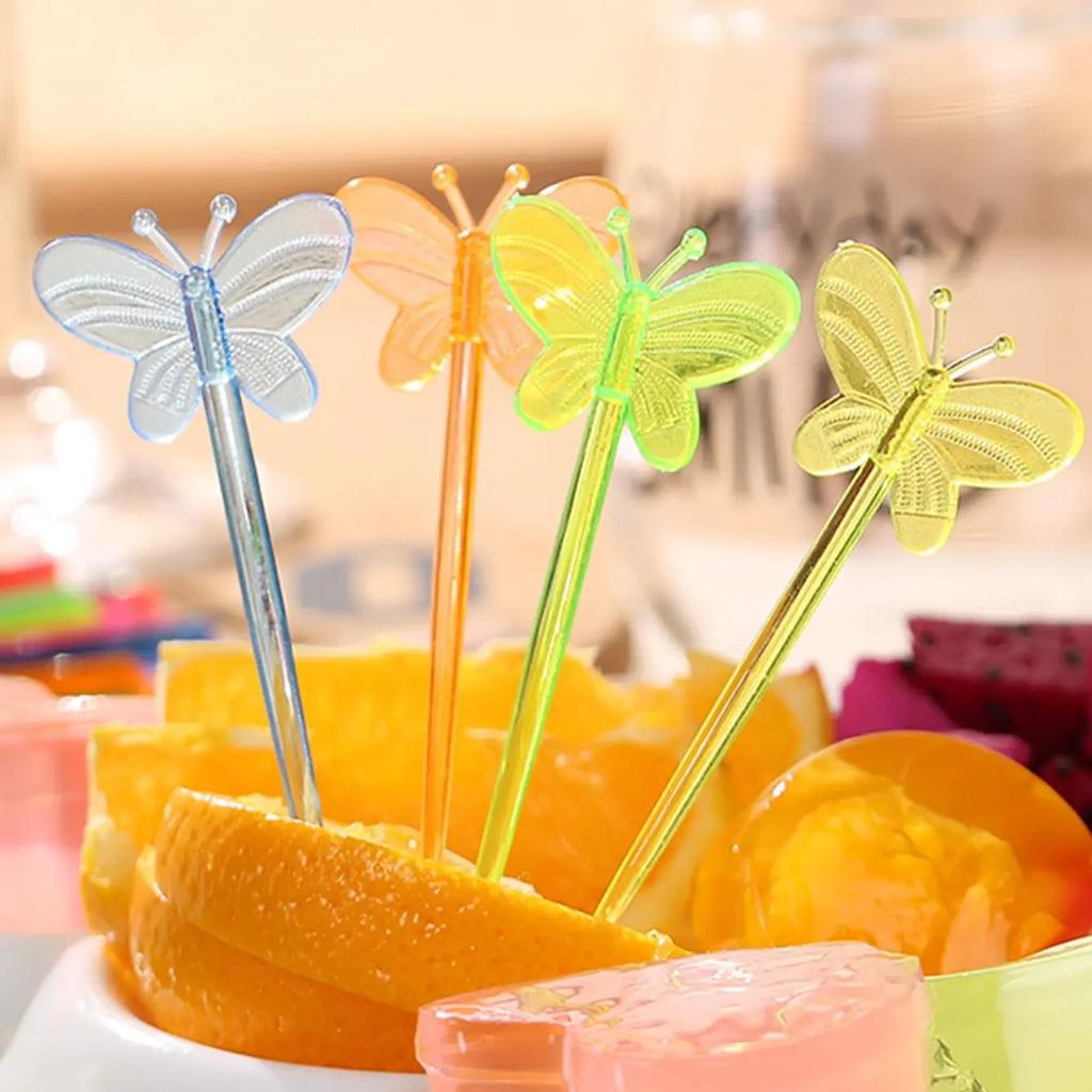 25 Stück - Einweg-Kunststoff-Fruchtgabeln in Farbe, Schmetterling-Fruchtspieße, Zahnstocher, Fruchtgabeln