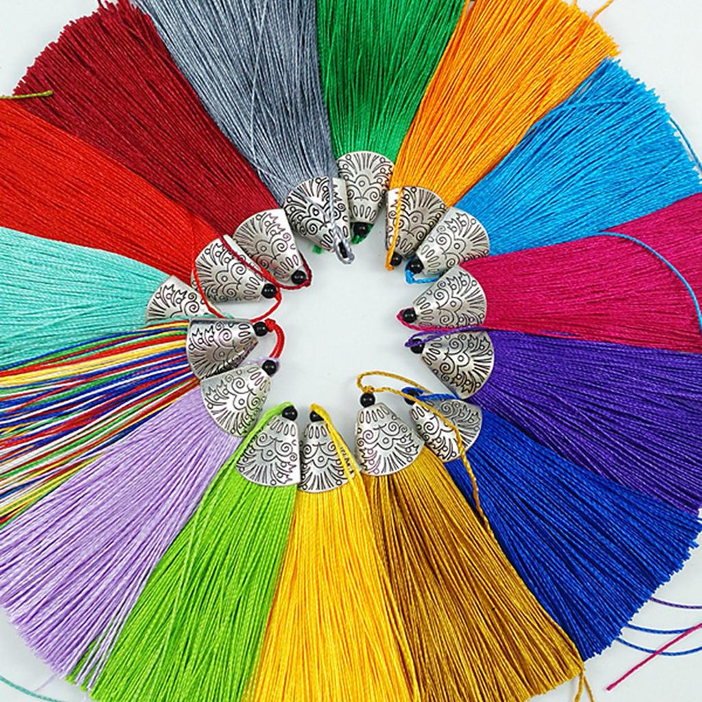 10 Stück-Fischmaul Quaste Seide Polyester Metallkappe Quasten Lesezeichen Hängende Ohrquasten für DIY Schmuckdekor Zubehör