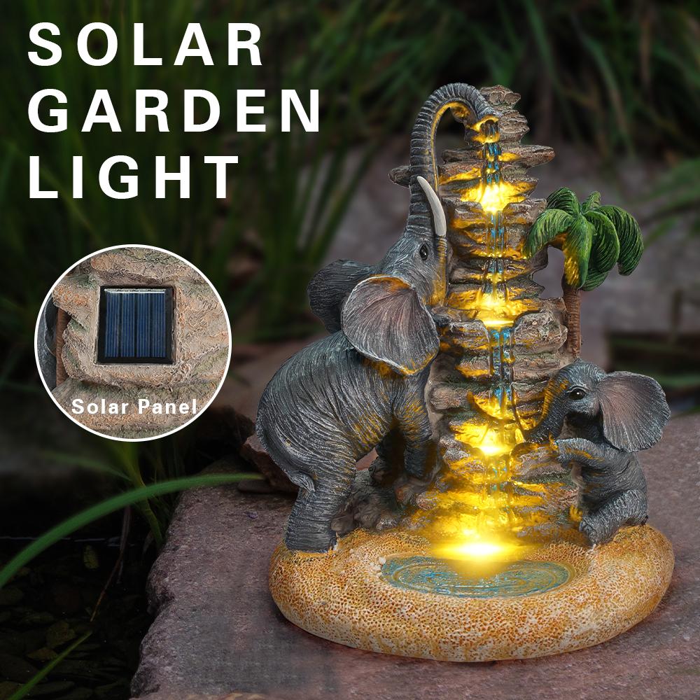 These outdoor statues feature built-in solar panels that absorb sunlight during the day, automatically lighting up with warm,