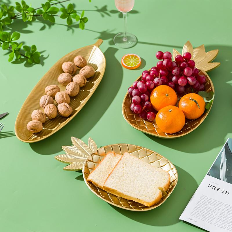 Golden Decorative Tray Nordic Metal Storage Tray, Gold Pineapple/Leaf Shape, Home Display & Decor Plate (Multi - Styles)