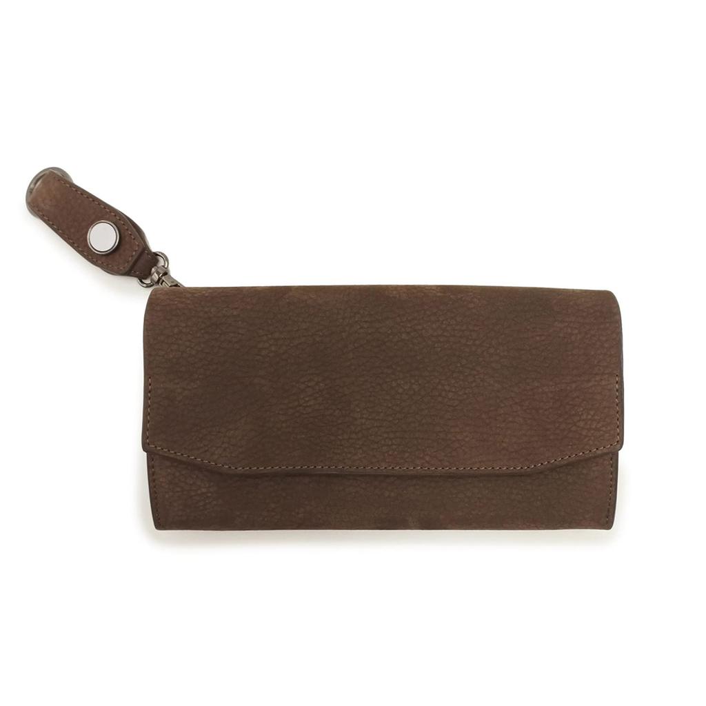 CIE FOLK LONG WALLET BROWN Genuine Leather Nubuck with Hook and Eye Closure, Reflective Design, Large Capacity, L-Shaped Zipper, Men's and Women's