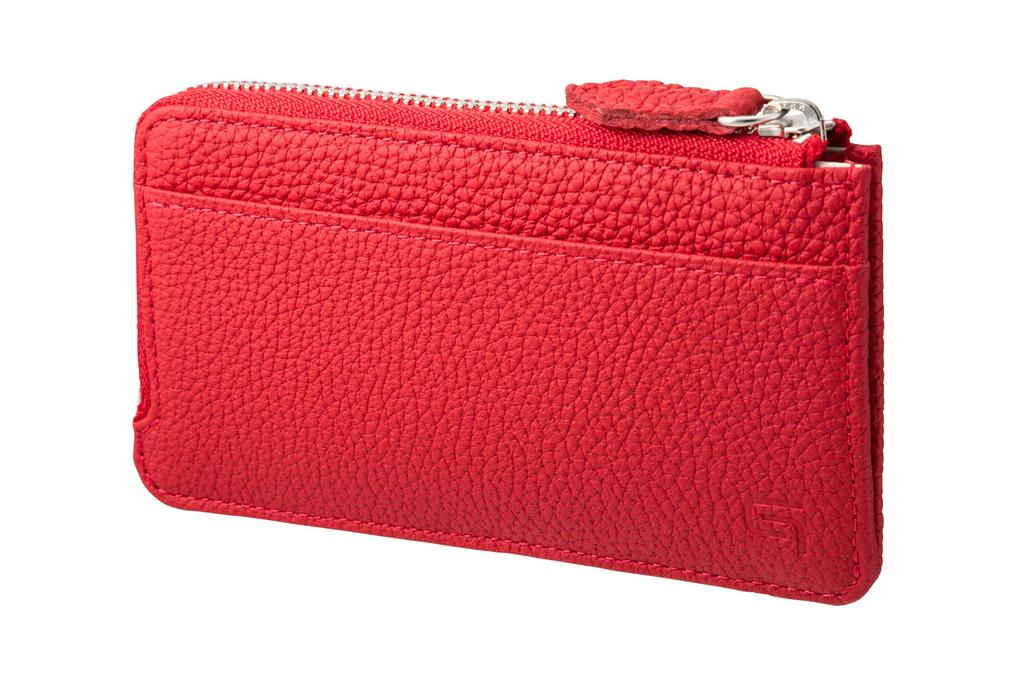 [GRAMAS] Flaches Reißverschlussportemonnaie aus geschrumpftem Kalbsleder in Rot mit echtem Leder-L-förmigem Reißverschluss und Schlüsselanhänger