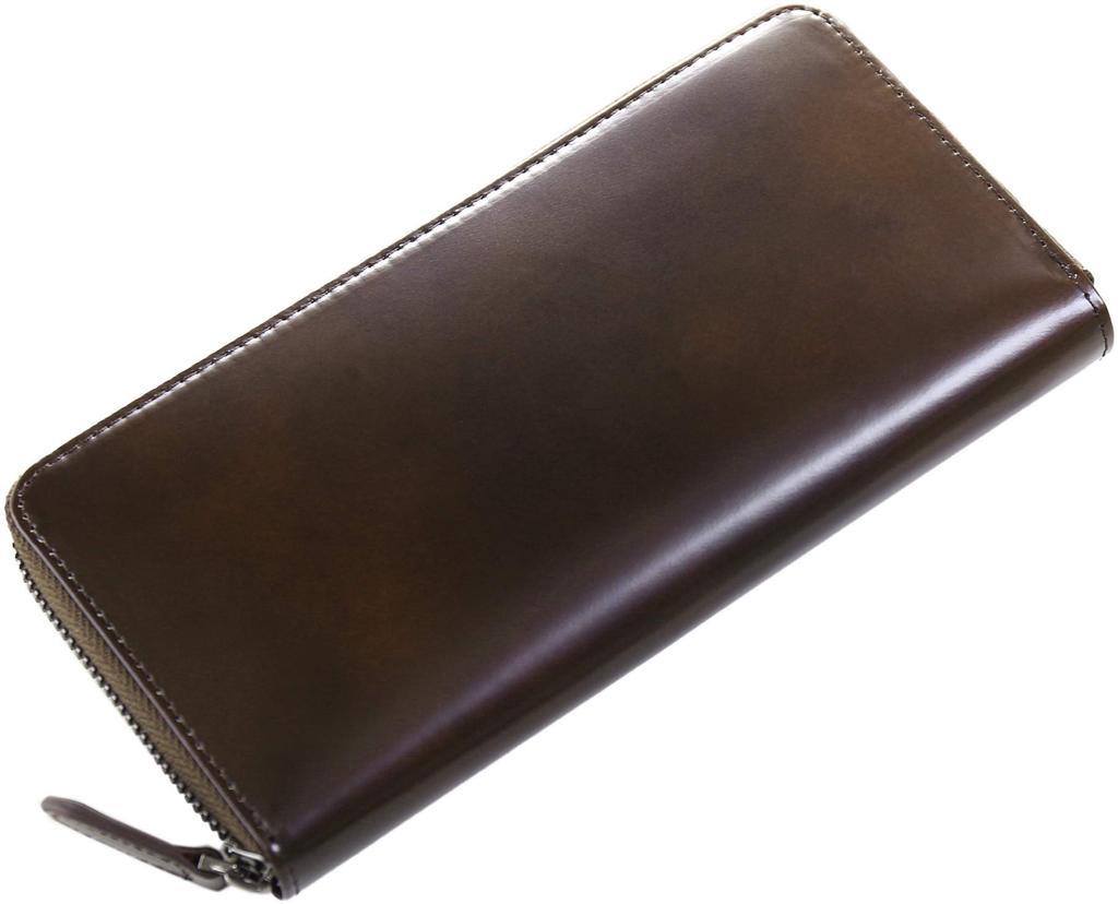 Sankyo Shokai Cordovan Lange Geldbörse mit Rundreißverschluss, Echtes Leder, doob London Geldbörse: Dunkelbraun (Schwarzes Nickel)