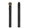 The Balenciaga women's slim belt features a black color with the brand's signature BB logo as decoration. The belt width is 2cm, giving it a slim and stylish design. The buckle is a plate-type attached to a vintage silver BB logo, creating an elegant atmosphere. The main material is natural calfskin, providing a soft and premium wearing experience. The belt has five notches for size adjustments and is finished with a tone-on-tone leather loop. The country of manufacture is Italy, boasting exceptional quality and authenticity.