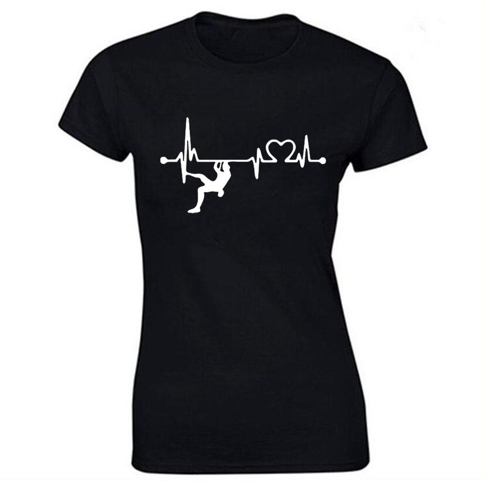 Kletterer Cooles Klettern T-Shirt Baumwolle Geburtstagsgeschenk Kurzarm Rundhals Hip Hop Berg Herzschlag T-Shirt Streetwear Damen