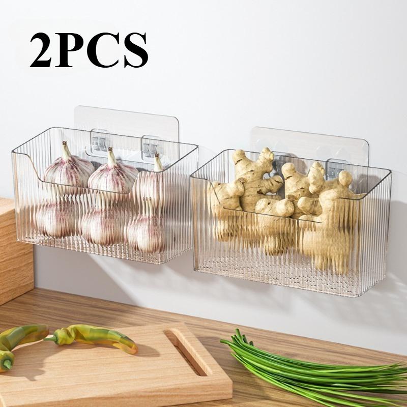 2er-Pack Aufbewahrungskorb mit transparentem Deckel - Selbstklebender Wand-Organizer für Schrank- und Vorratsschranktür