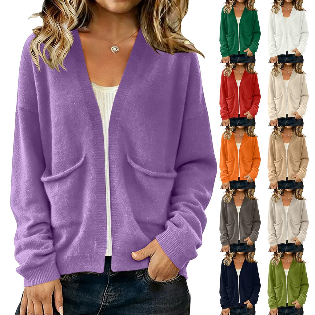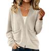 Damen Einfarbig Langärmliger Cardigan Tasche Strickjacke