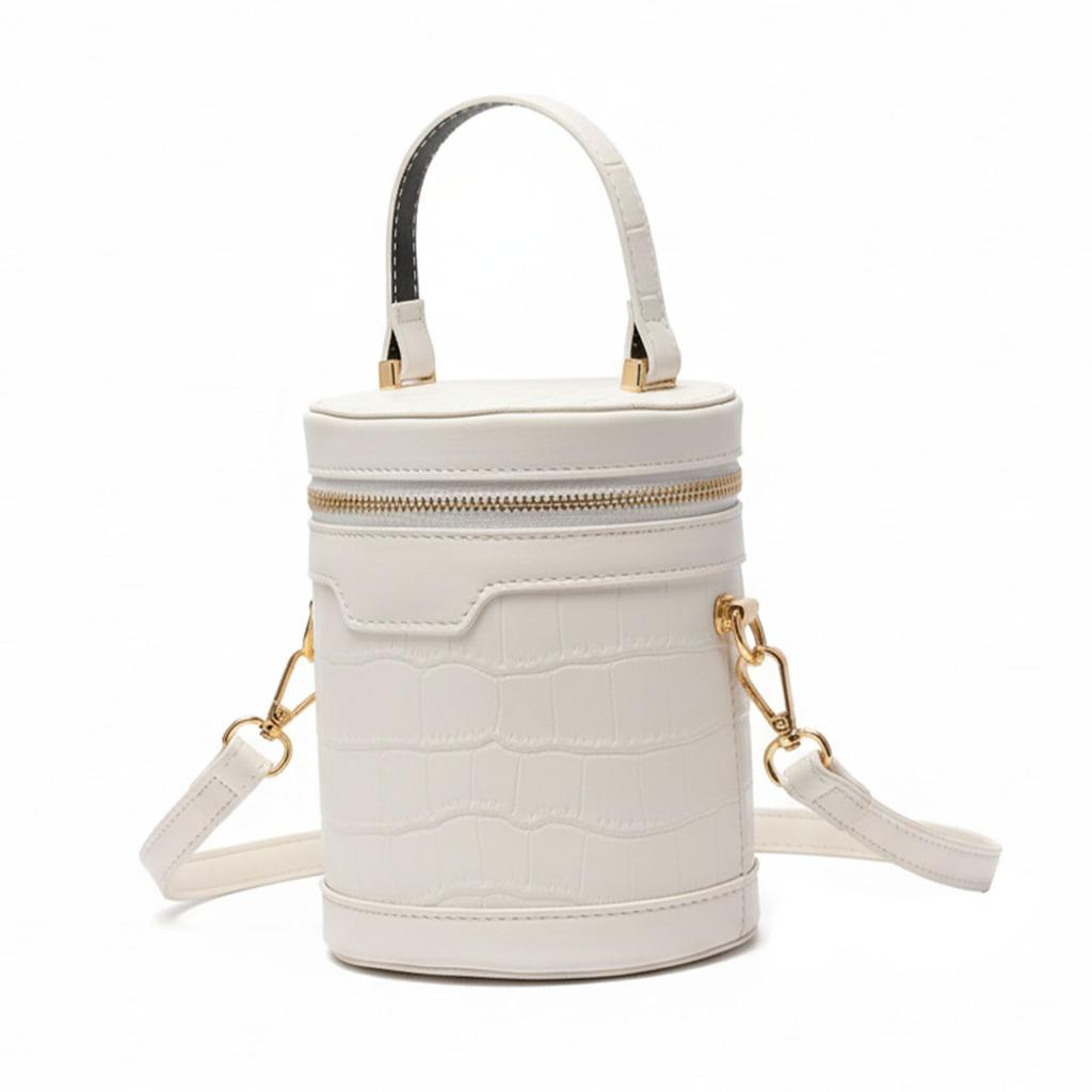 Modische Zylinder Handtasche Tote Damen PU Leder Verstellbar Elegant Umhängetasche für Tägliche Arbeit Weiß
