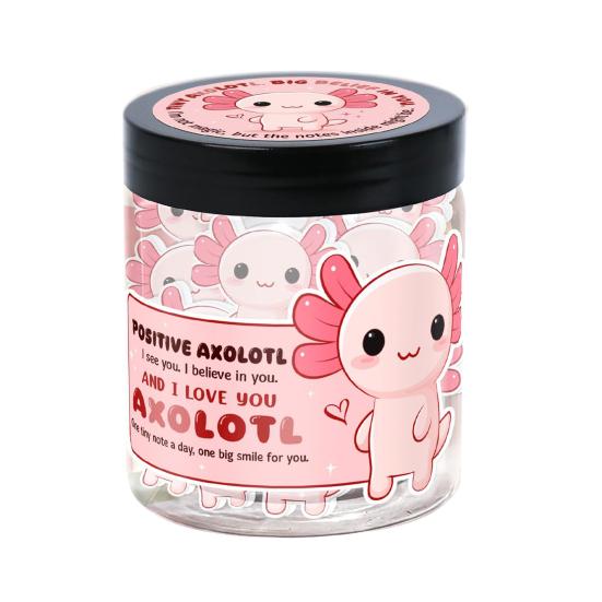 Kompaktes und praktisches Geschenkglas – Untergebracht in einem entzückenden Axolotl-Glas, haben diese Affirmationskarten die perfekte Größe, um in Schultüten oder auf Schreibtische im Studentenwohnheim zu passen.. Das kompakte Design des Glases macht es einfach zu tragen oder auszustellen, sodass Benutzer mühelos jeden Tag eine neue Karte auswählen können.. Diese funktionelle Verpackung hält die Karten nicht nur organisiert, sondern dient auch als charmantes Dekorationselement, das jeden Raum oder Arbeitsbereich aufhellt.