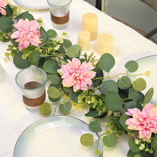 Sofort einsatzbereit: Dieser künstliche Girlande benötigt kein Gießen oder Wartung, sodass Sie Dekorationen weit im Voraus arrangieren können.. Wiederverwendbar und kostengünstig, kann es allein für einen minimalistischen Look verwendet oder mit Blumen, Stoffen und Lichtern kombiniert werden, um mühelos geschichtetes visuelles Interesse zu erzeugen.