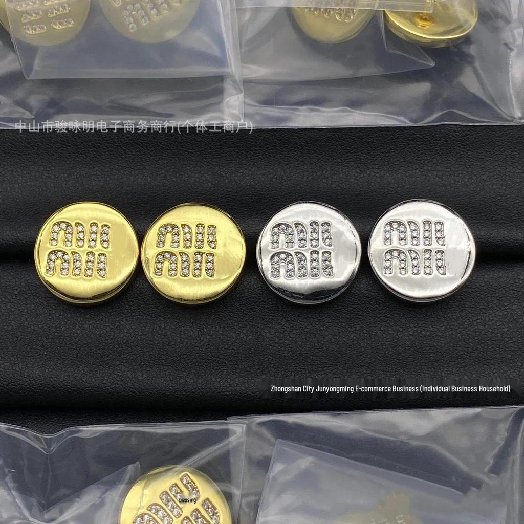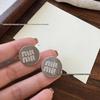 Mius zweireihige Kristall-Buchstaben 'Miu' Runde Kuchen-Steckohrringe: Süßer Stil für Damen und Mädchen