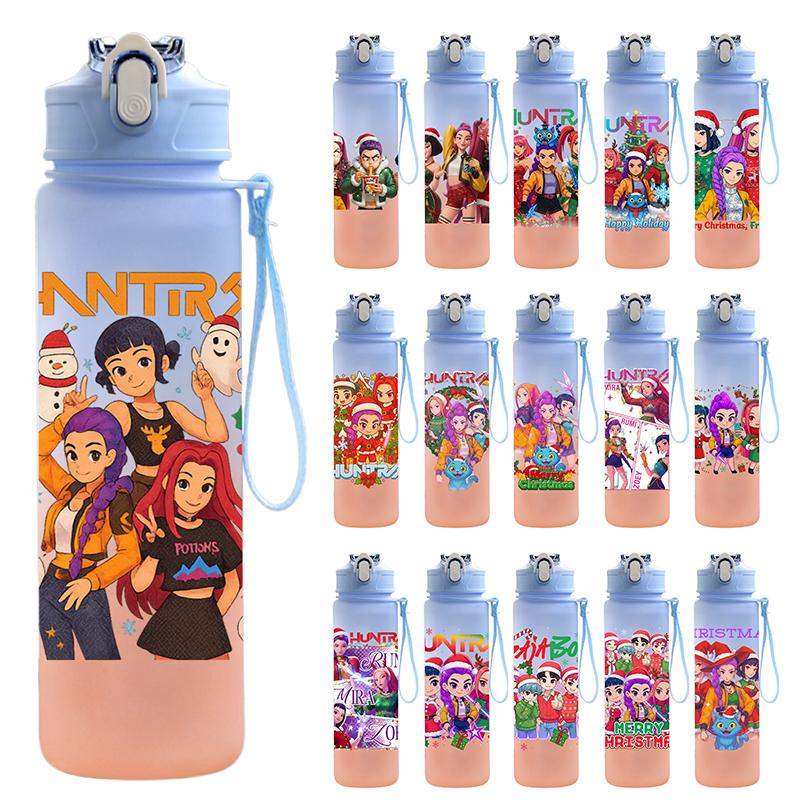 750Ml Water Bottle Anime Christmas K-Pop Demon Hunters Printed Large Capacity Drinking Cup Portable Outdoor Sports Water Cup Children Kid Gift