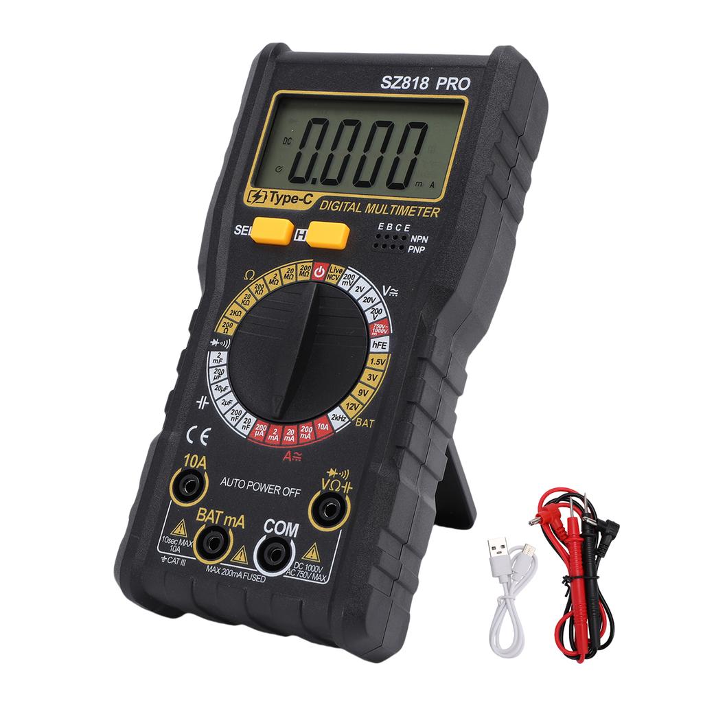 1. Ein Gerät für alles: Dieses Multimeter unterstützt die Identifizierung von stromführenden und neutralen Leitern, NCV-Spannungserkennung sowie AC/DC-Spannungs- und Strom-, Kapazitäts- und Diodendurchgangsprüfung, hFE-Transistortest. Es deckt Heimschaltungsprüfung, elektronische Reparatur, Geräte-Debugging und mehr ab.. Kein häufiger Werkzeugwechsel erforderlich, ein Multimeter löst die meisten Schaltungsmessprobleme, praktisch und bequem.