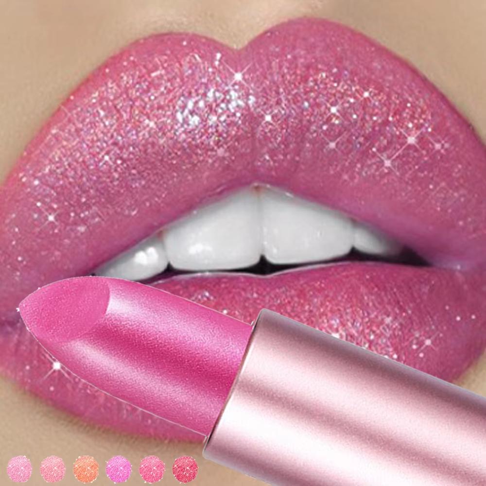 Pearlescent Rose Glitter Velvet Lipstick Waterproof Pearly Shine Matte Shimmer Diamond Lipstick Women Sexy Lips Makeup Cosmetic