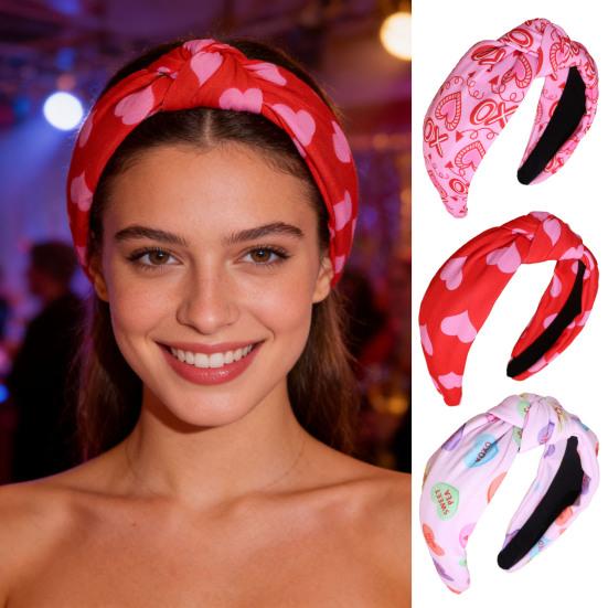 Süßer, von Liebe inspirierter Stil: Das aus weicher Baumwolle oder Satinstoff gefertigte Stirnband ist mit zarten, liebesbezogenen Drucken und handgefertigten Stoffschleifen verziert.. Dieses romantische Design fängt den Geist des Valentinstags perfekt ein und macht es zu einem idealen Accessoire, um Zuneigung und Süße auszudrücken.