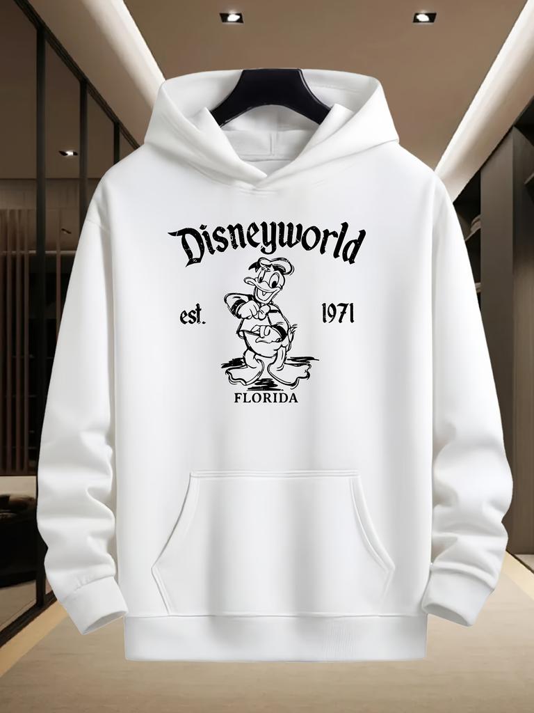 Disney Herren Kapuzenpullover Donald Duck Serie Sweatshirt Herbst und Winter Lässig Weiß Herren- und Damen-Top Hoodie