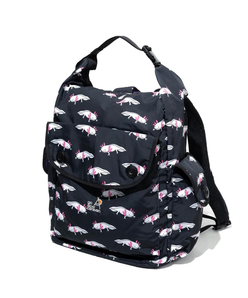 [go slow caravan] 358103 Polyester Taffeta 2-Way Roll-Top Day Bag, All-Over Pattern, Free Size