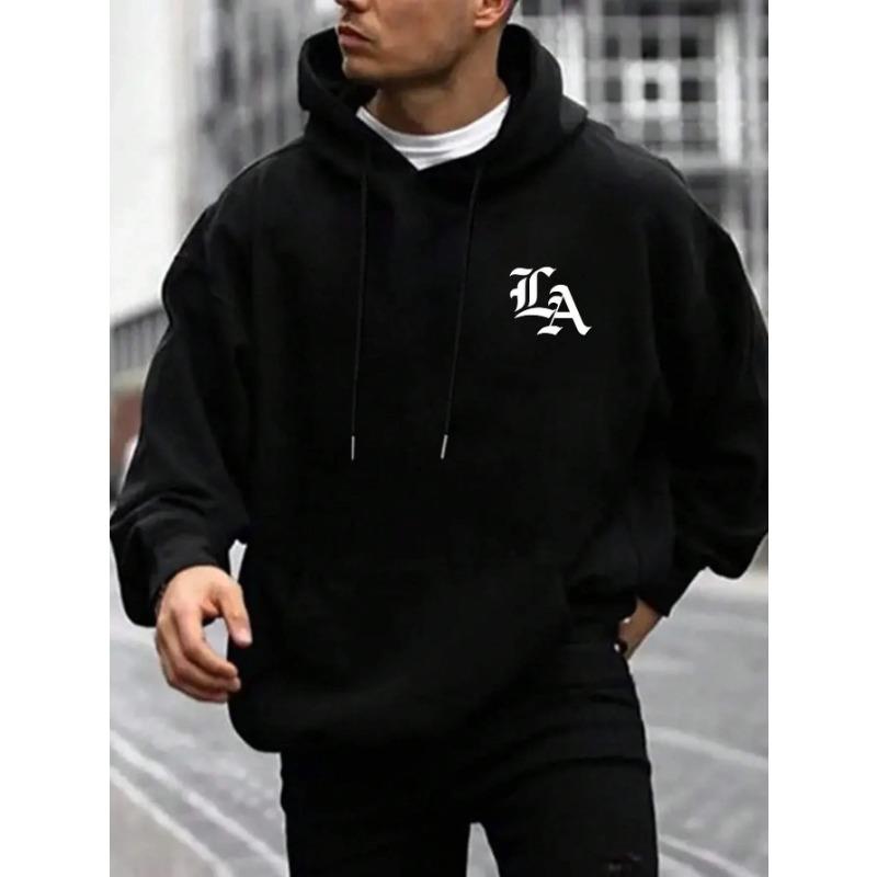 Men's new trend fashion high quality leisure letters double-sided printed fitness pullover solid color hoodie