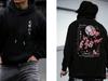 Herren-Hoodie mit Kirschblüten-Grafikprint, Oversize-Pullover, lässiges Streetwear-Sweatshirt, Langarm, japanischer Stil