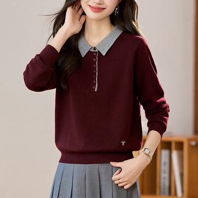 Strickpullover mit Reverskragen in Kontrastfarbe, Damen, dünn, neu, Frühling und Herbst, hochwertig, Polokragen, figurbetont, Pullover