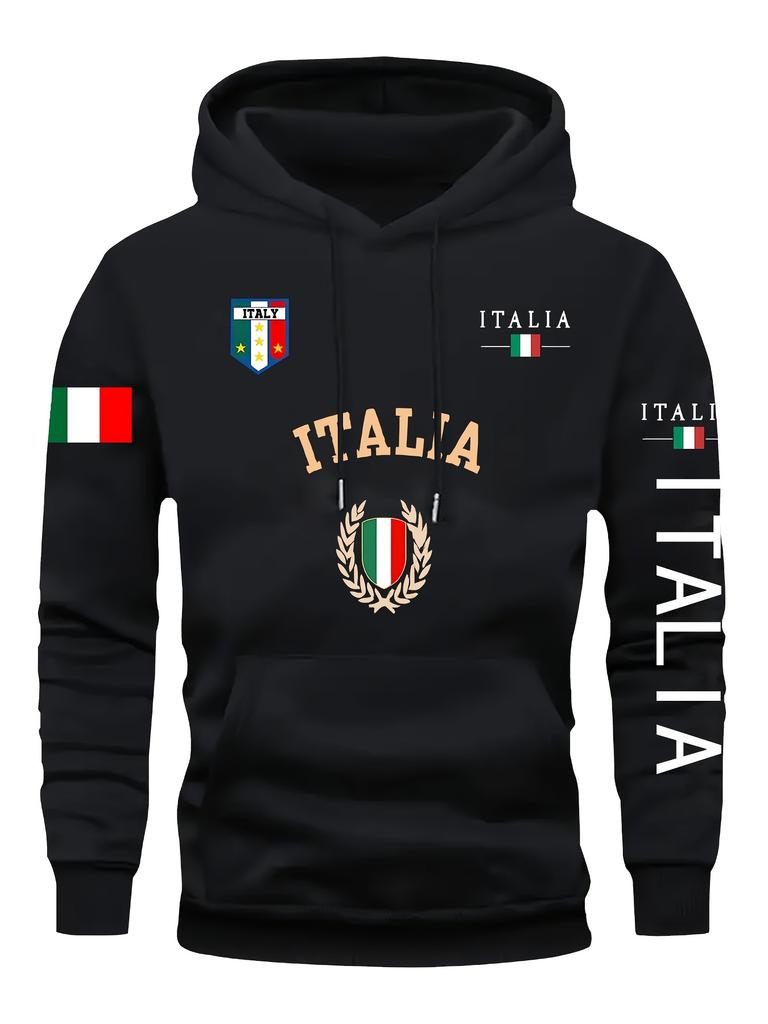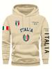Italienische Flagge und Emblem Aufdruck Herbst Winter Modelle Herren Winddicht Warm Baumwolle Übergroß Fleece Hoodie Outdoor Pendler Hoodie