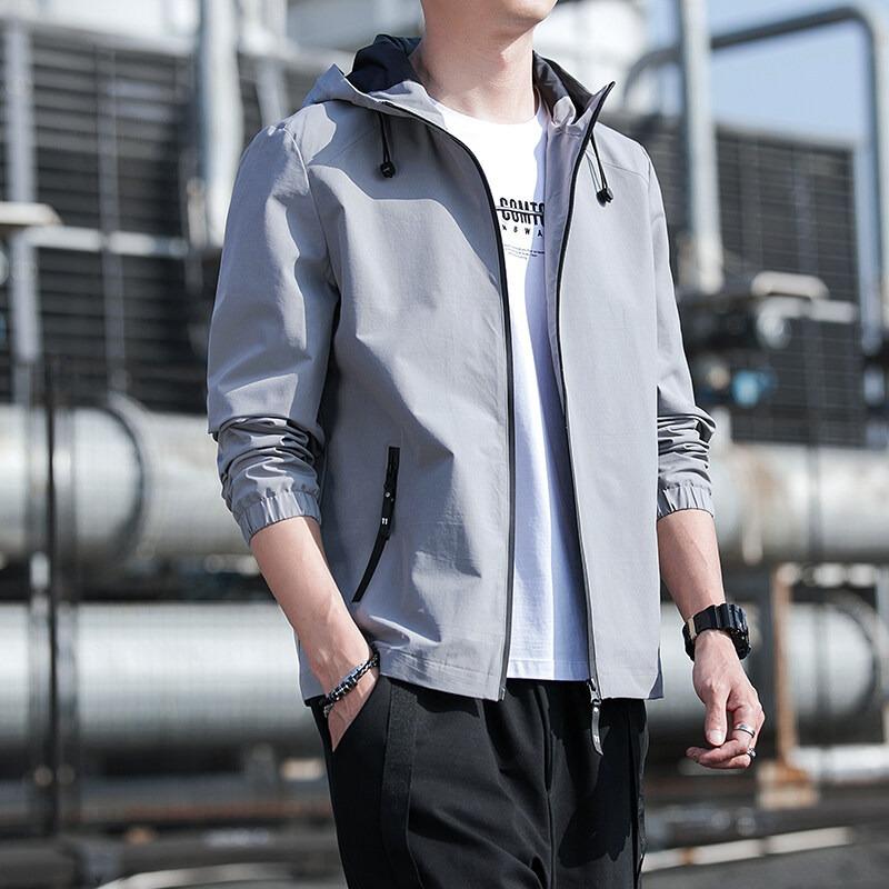 Frühling Herbst Unifarbene Kapuzen-Freizeit-Modejacke Herren All-Match Reißverschlussmantel Herren Cardigan Oberbekleidung Top