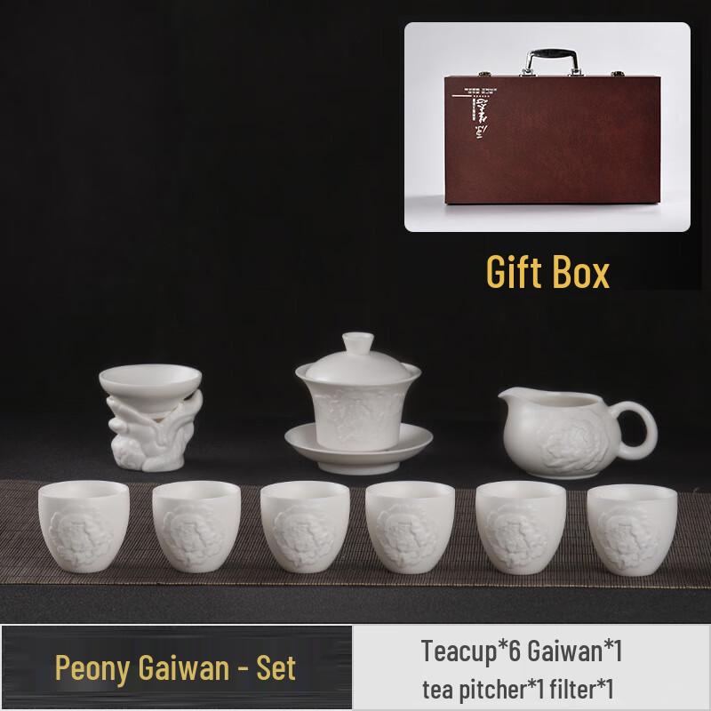 Chaxun White Porcelain Peony 10-Piece Tea Set