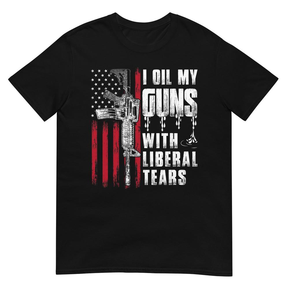 Ich öle meine Waffen mit liberalen Tränen Waffe Amerikanische Flagge Patrioten T-Shirt