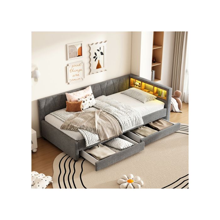 Schlafsofa, 90*200 cm, Tagesbett, Schlafsofa, Bettaufbewahrung, USB+Typ C (ohne Matratze), Leinen, Grau