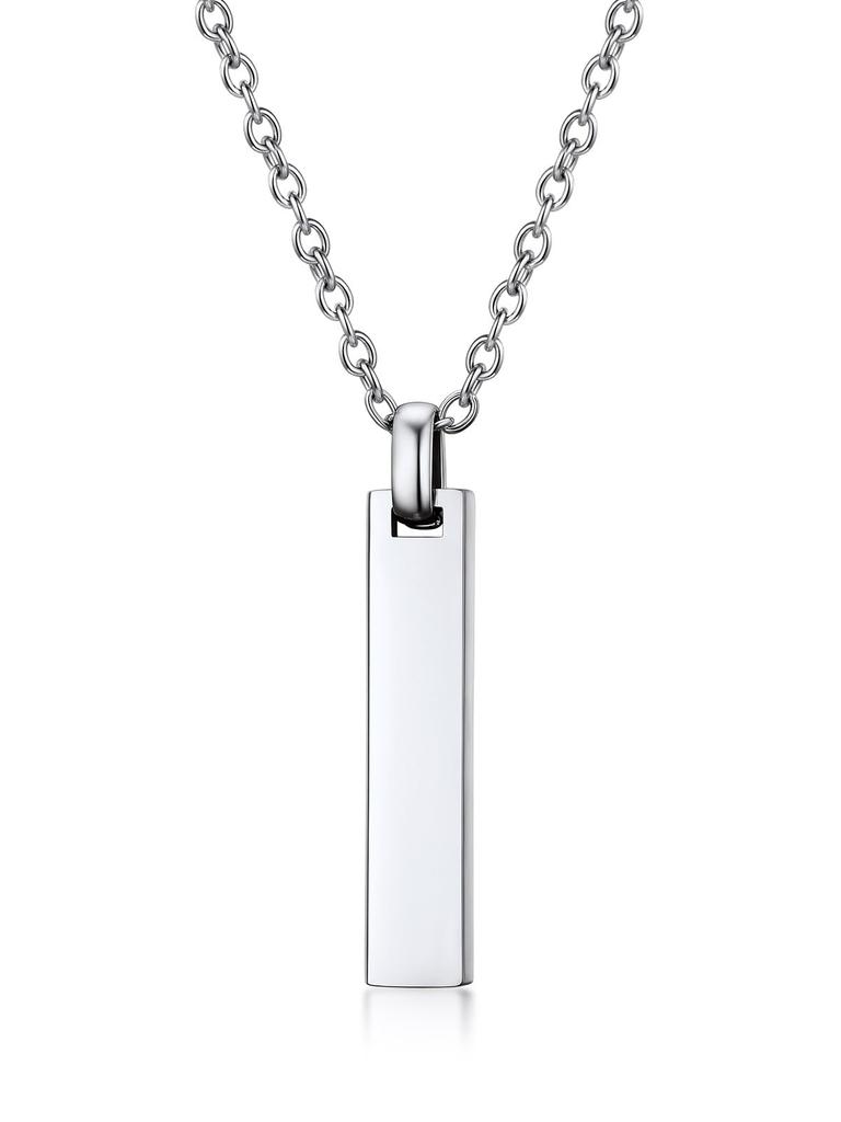 [PROSTEEL] Einfache Herren-Plattenhalskette Anhänger, Chirurgenstahl 316L, Hypoallergen, Rostbeständig, 55 cm Lang [Azuki-Kette, Silber]