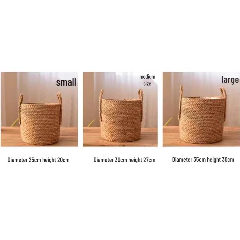 Hand-Woven Cylindrical Plant Basket with Liner & Handle