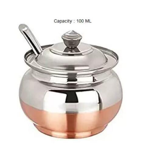 Ghee-Topf aus kupferbeschichtetem Stahl mit Löffel | Ghee-Glas aus kupferbeschichtetem Stahl für Ghee-Set (100 ML Packung von 1)