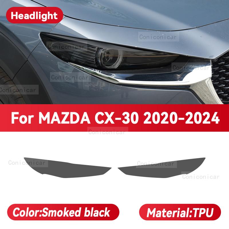 Für MAZDA CX-30 2020-2024 Auto-Scheinwerfer Rauchschwarz TPU Schutzfolie Frontlicht Tönung Farbwechsel Aufkleber Zubehör