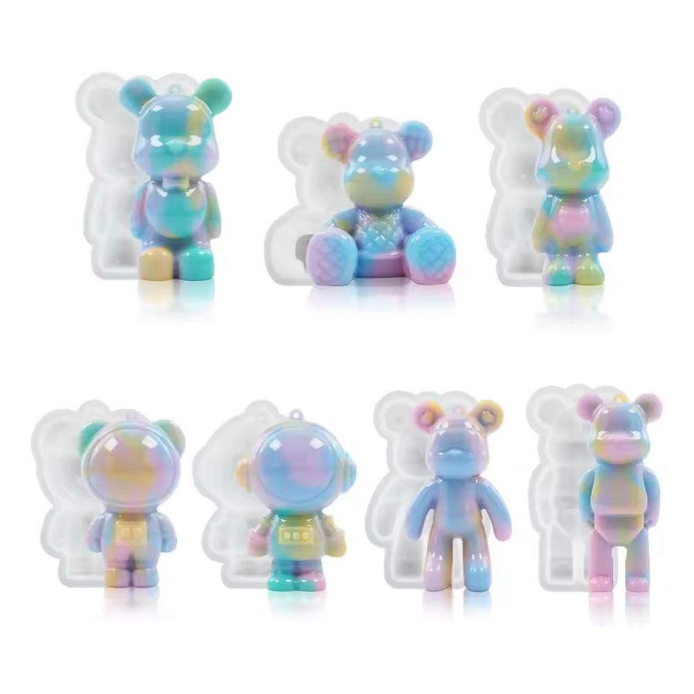 DIY 3D Kleiner Bär Kristall Epoxidharzform Astronaut Schlüsselanhänger mit Loch Anhänger Silikon Blutrosa Bärenform