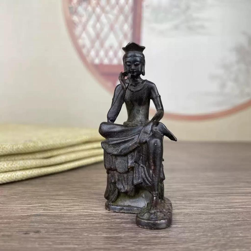 Maitreya Bodhisattva 66mm Buddhist Statue Maitreya Bodhisattva Small Buddha Statue, (Antique Finish/Brass), Collection, Half-Knee Statue, Copper,