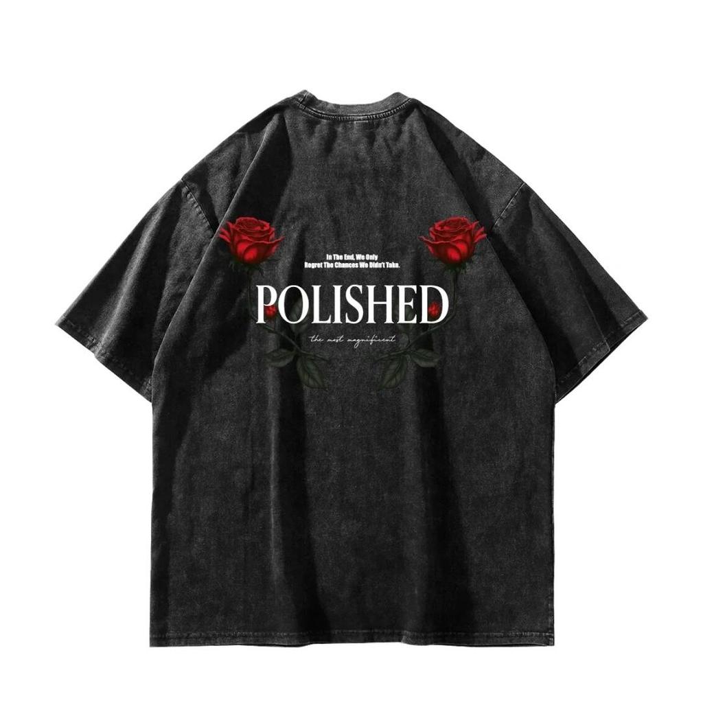 POLISHED Slogan Rosen-Print Vintage T-Shirt Lockere Passform Unisex Trendy Markenstil Täglich Lässig Vielseitiges Oberteil