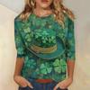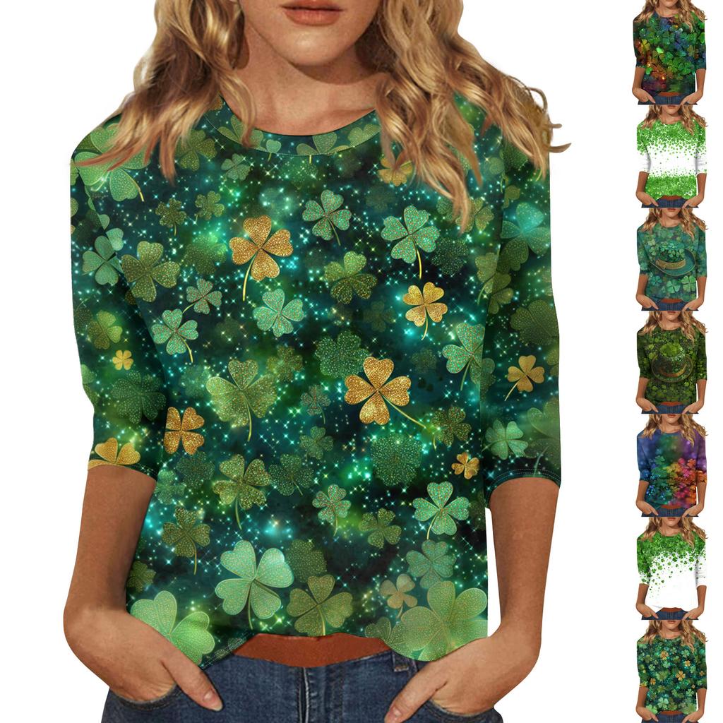 Damenoberteile Dreiviertelarmshirt Rundhalsausschnitt Lockeres Freizeitshirt Druck T-Shirt