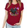Damen Freizeit Karneval Print T-Shirt Rundhals Pullover Kurzarm Oberteil