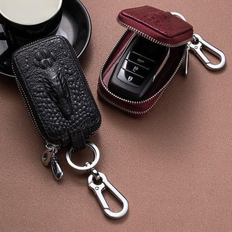 Single/Double Layer Leather Key Case for Car Key Wallet Pocket Key Holder Organizer Pouch Keys Organizer Zipper Case Bag
