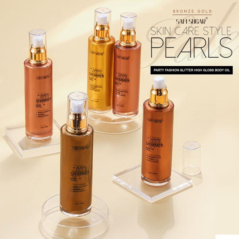 100ml Perlmutt Roségold Körper Schimmeröl Highlighter - Gesicht Aufhellen Glitzer Bronzer Haut Glanz Illuminator Make-up Glanz Flüssig