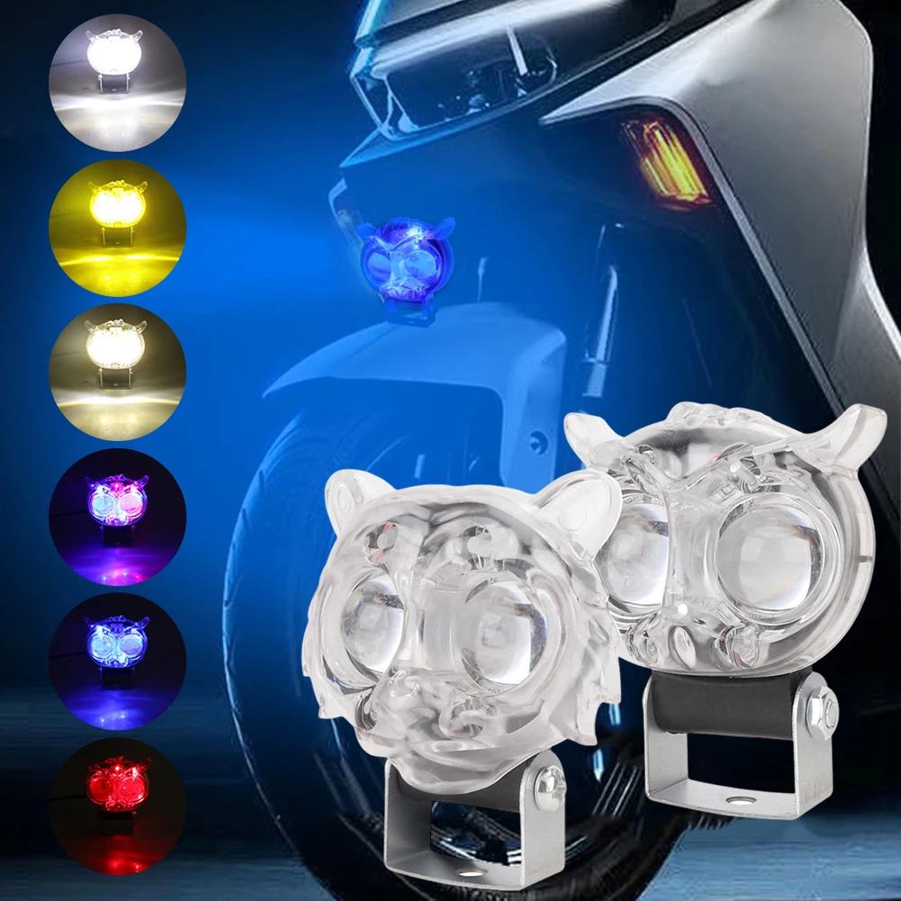 Adjustable Bracket Motorcycle Headlights Universal 8 Lighting Modes Lights 6000K Motor Spotlights LED Flash Colorful Owl Lamp